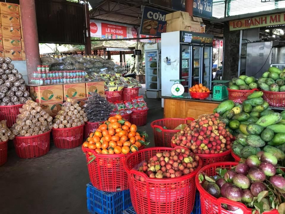 Back onto the boat and out of the canals – and into main river. The second floating market was for fruit and vegtables – we had drivers arriving to show us wares, and our guide purchased some mysterious fruits for us that we nibbled on